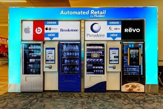• Hudson is rolling out an automated, interactive vending machine “stores” that are available 24/7 for hurried airport shoppers. The “stores” have interactive touchscreens sealed with an anti-microbial shield to showcase merchandise images and provide product information.