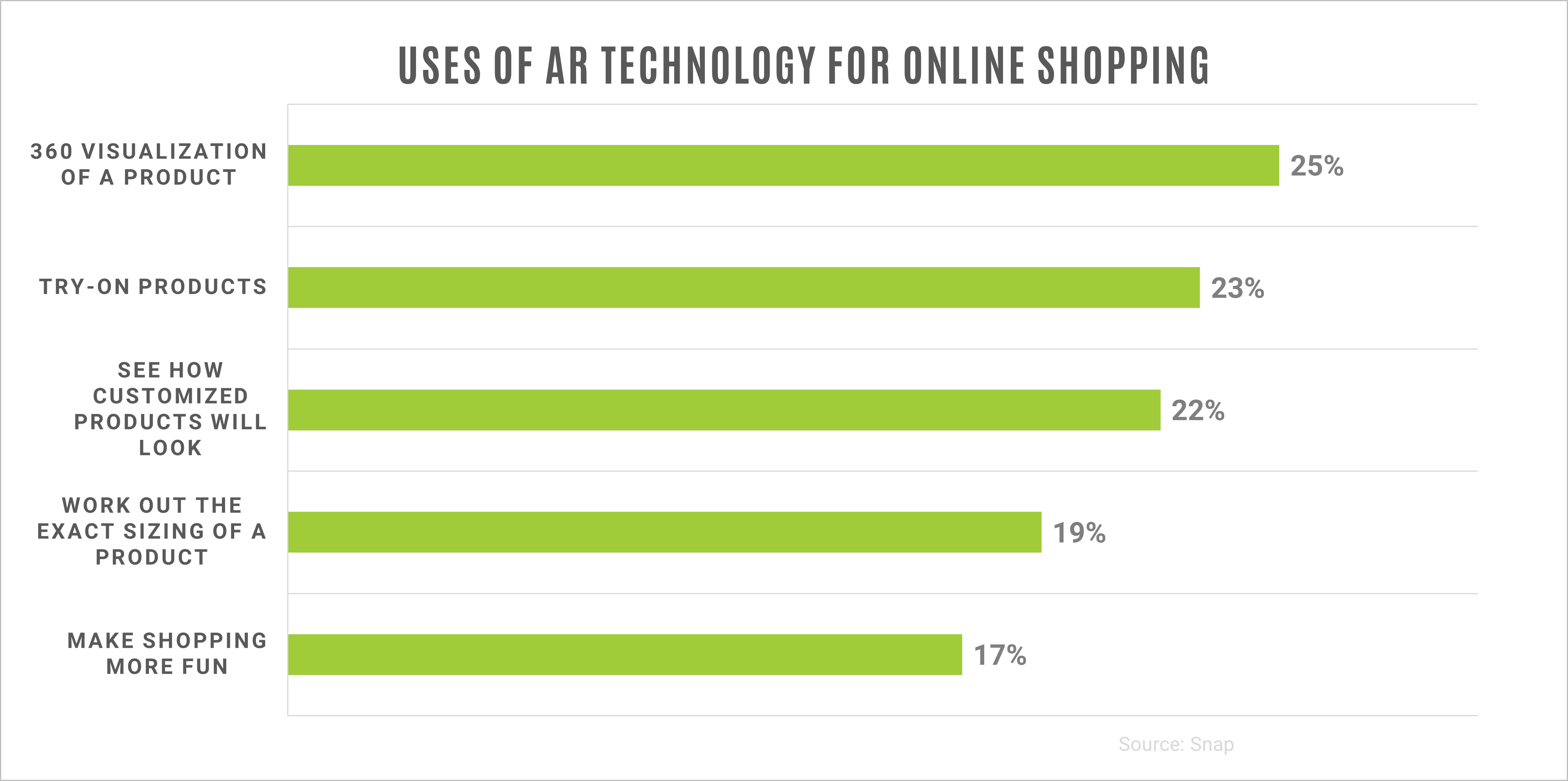 When asked which parts of the online shopping experience they would be interested in using AR for, according to a recent survey from Snap: