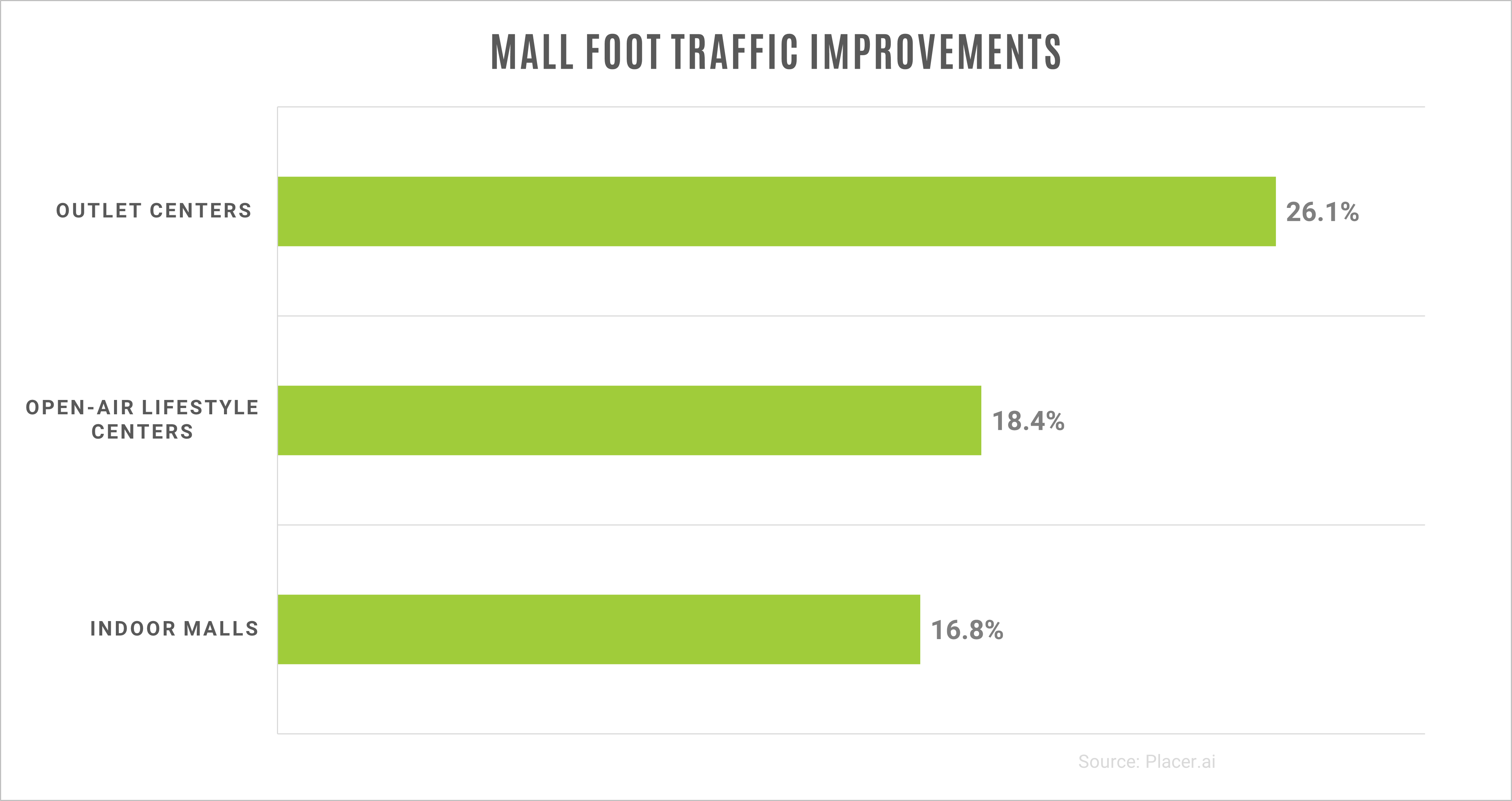 As consumers worry about rising inflation and the war in Ukraine, COVID-19 precautions have taken a backseat, returning people to malls and shopping. According to mobile device tracking data, all malls nearly matched pre-pandemic levels, with indoor malls seeing the same levels of 2019 during the week of March 14th. This comes as malls saw a decrease in January and February, most likely due to COVID-19 precautions and rising inflation. Looking forward, it will be tough to determine if traffic will continue to increase due to rising inflation and gas prices. (View source)