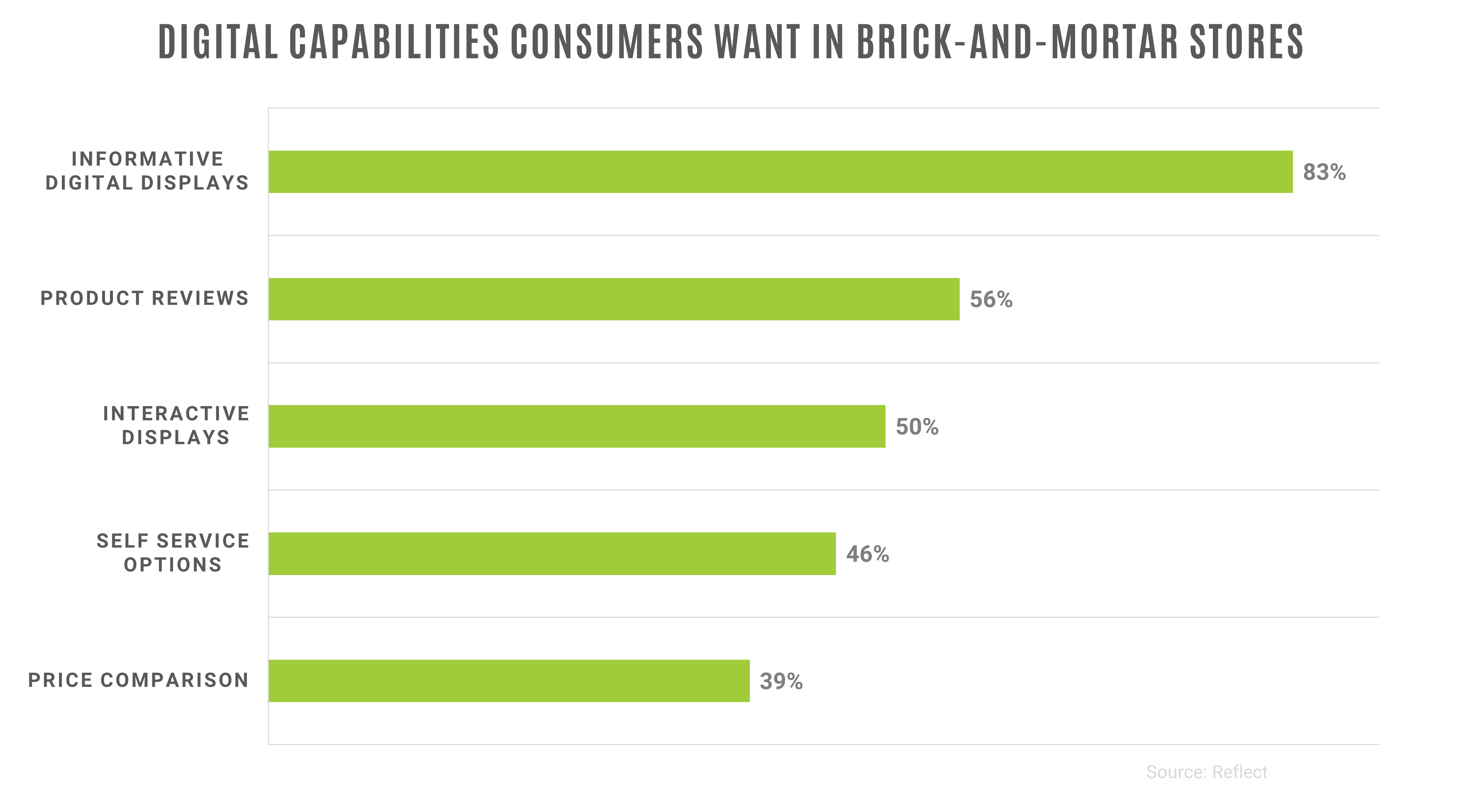 Consumers are wanting more digital capabilities in brick-and-mortar stores.