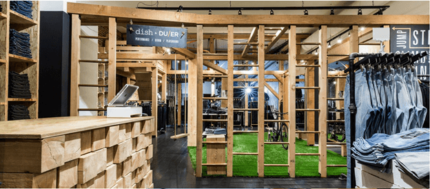 With experiential retail becoming the new store experience, Canadian performance brand, Duer, is beginning expansion within the US with the opening of their second store within the Fairfax District of Los Angeles. At the forefront of their brand, the use of natural and sustainable materials that comprise 95% of their clothing but I’m sure you’ve asked, how well does this clothing function? Duer has got you covered with their interactive and experiential design dubbed the “performance playground”, containing multiple features such as ladders, a bike station, and swings enabling you to test out their clothing in various settings. In addition, they have a hammock that sits 7ft off the ground that allows customers to hangout and view the store floor. The LA store will be a smaller version of their flagship store in Vancouver, said to feature only swings. (View source 1, source 2, source 3)