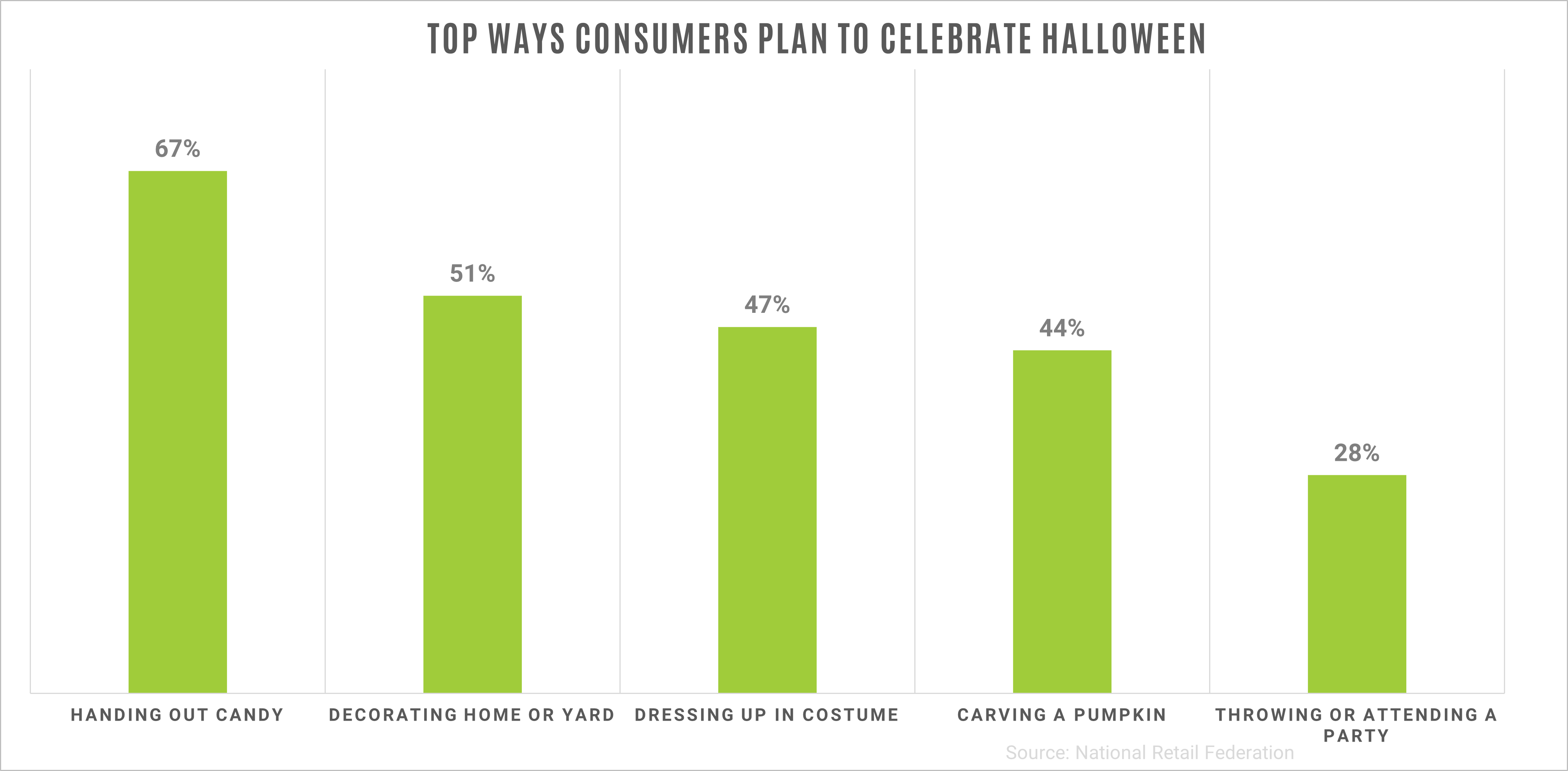 Halloween is creeping up on us and it’s going to be a very popular one this year. According to NRF’s annual survey conducted by Proper Insights & Analytics, total Halloween spending is expected to reach a record $10.6 billion, passing 2021’s record of $10.1 billion. Persons involved in Halloween activities are above pre-pandemic levels as 69% of consumers plan to celebrate the holiday this year, up 1% from 2019. The most popular costume among children is spiderman as more than 2.2 million children plan to dress as him, followed by their favorite princess (1.9 million), witch (1.6 million), ghost (1.3 million), tied for fifth, Batman and other superheroes. Most popular among adults: witch (5.3 million), vampire (1.7 million), ghost (1.5 million), pirate (1.4 million), tied for fifth is Batman and cat costumes. (View source)