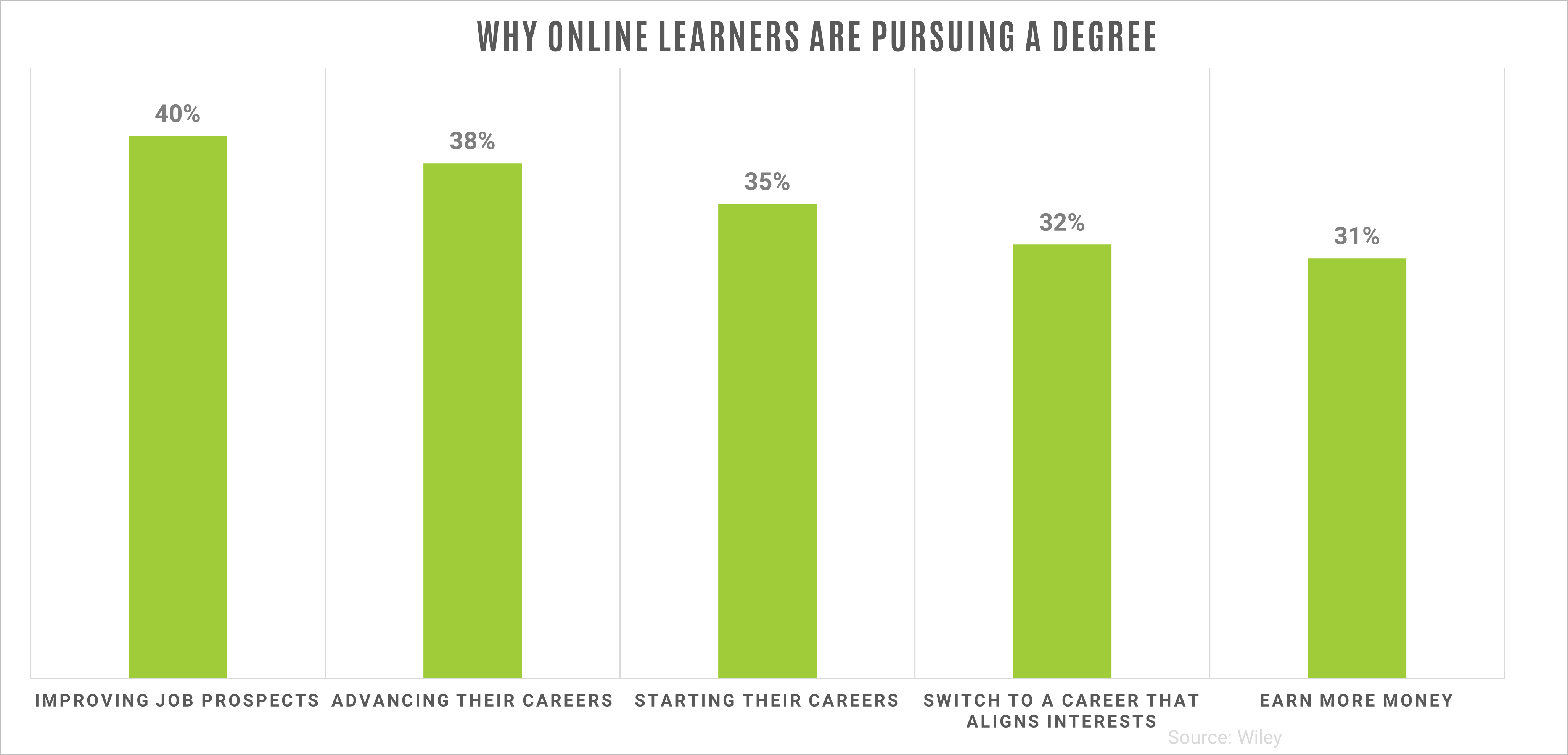 The pandemic forced every learner and educator to adopt online learning tools in order to continue education. While resources were lacking in the beginning, 94% of online learners said they have a positive or very positive view of online learning, and 83% would learn online again, according to Wiley’s new annual report. Greater offerings of online classes are bringing in more students, 77% said the fact that the program was offered online was the most important factor in their decision to learn remotely, 60% said they’d choose an equivalent program at a different school if their preferred university didn’t offer the program online. (View source)