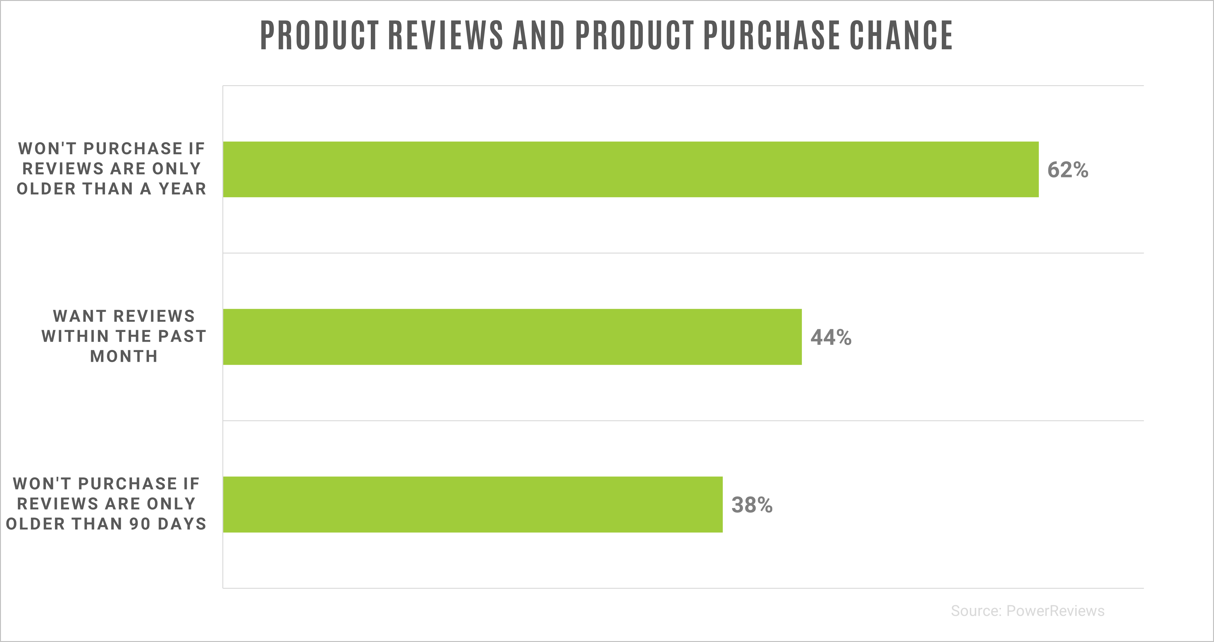 Recent studies point towards quality and price as the biggest determinate towards consumer purchasing habits but those aren’t the biggest factors. The greatest is actually reviews, particularly recent reviews, and many of them. According to a new study by PowerReviews, 70% of consumers read between one and 25 reviews prior to making any purchase. When it comes to purchasing a product or brand for the first time, 86% of consumers will place even more importance on reviews. Especially recency as 64% would be more apt to buy a product with fewer, more recent reviews than one with a high volume of older reviews. (View source)