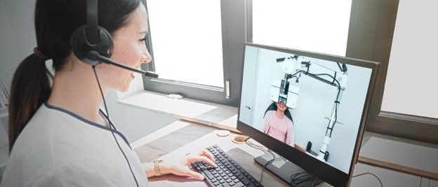 A trained staffer will set up the phoropter and position the patient in it correctly, then let the optometrist who appears on a TV in the room conduct the examination remotely. My Eyelab will be able to open franchises in smaller markets or un-serviced urban markets in smaller stores with this technology.