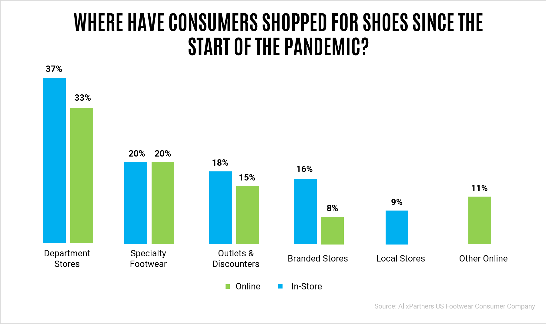 Consumers were asked in a new AlixPartners survey where they’ve been buying shoes during the pandemic, and the answer was overwhelmingly department stores.