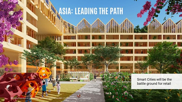 Smart cities concepts in China will be the battleground for retail as the home becomes the place where most purchases will happen. These cities will be built to be pandemic proof and self-sustaining – food is grown on the rooftops of each building, water systems will test and treat for pathogens, and cities come complete with their own power generation. Groceries and other items ordered online will be fulfilled by automated robots and delivered via self-driving vehicles.